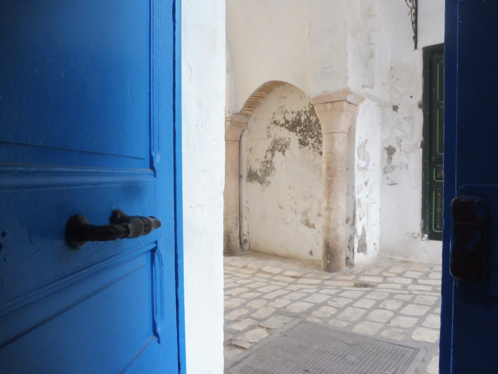 Architecture : La rue est bordée de bâtiments historiques qui reflètent l'architecture traditionnelle tunisienne, avec des maisons aux façades blanches et aux portes en bois sculpté.